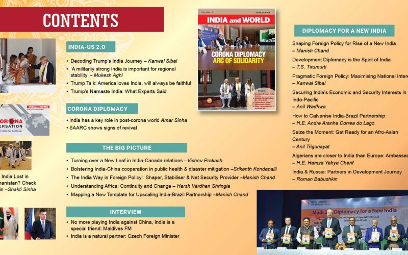 The novel coronavirus pandemic is indeed the defining issue of the time, which has triggered a new phase of geopolitical competition and reconfiguration. Against this backdrop, the Double Edition of India and World magazine focuses on India’s Corona Diplomacy as well as India’s relations with key power centres- in then world.
