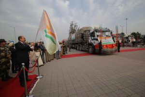 In a ceremony held at Amritsar on February 22, India’s Foreign Secretary Harsh Vardhan Shringla, along with Afghan Ambassador Farid Mamundzay and World Food Program Country Director Bishaw Parajuli, flagged off the first convoy of 50 trucks carrying 2500 MT of wheat assistance from India to Afghanistan via Pakistan at the Attari  border.