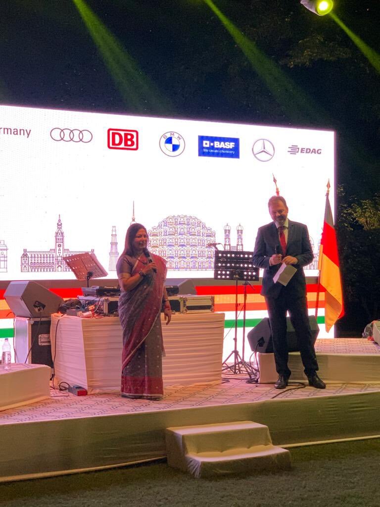India’s Minister of State for External Affairs Meenkashi Lekhi, guest of honour, struck an optimistic note on the upward trajectory of India-Germany relations. “It is my honour to be here as we mark the Unification Day of Germany. The two countries, no matter how different we look, we cherish and share the same value system.”