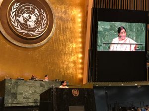 Speaking at the 73rd session of the United Nations General Assembly, the minister highlighted Pakistan’s doublespeak on terrorism before the international community and made it clear that in an atmosphere of continuing cross-border terror, no talks can take place.