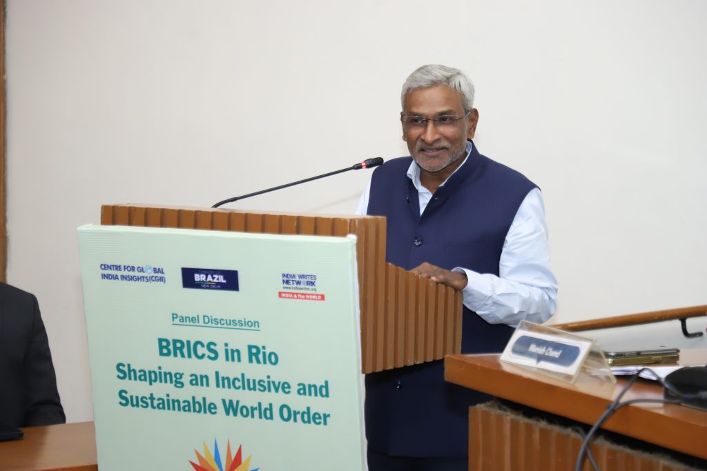 Ahead of the 17th BRICS summit in Rio de Janeiro, Centre for Global India Insights, in partnership with the Embassy of Brazil in India, organised a conference titled “BRICS in Rio: Shaping an Inclusive and Sustainable World Order,” at India International Centre in New Delhi on June 20, 2025. Mr Dammu Ravi, India’s BRICS Sherpa, Secretary (ER) in India’s Ministry of External Affairs, delivered the keynote address which focused on the pivotal role of BRICS+ in providing viable solutions for challenges faced by the Global South.