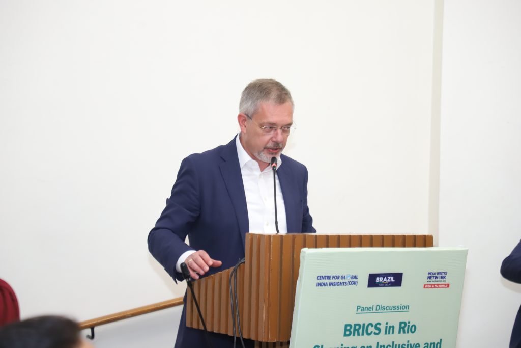 Ahead of the 17th BRICS summit in Rio de Janeiro, Centre for Global India Insights, in partnership with the Embassy of Brazil in India, organised a conference titled “BRICS in Rio: Shaping an Inclusive and Sustainable World Order,” at India International Centre in New Delhi on June 20, 2025. Mr Dammu Ravi, India’s BRICS Sherpa, Secretary (ER) in India’s Ministry of External Affairs, delivered the keynote address which focused on the pivotal role of BRICS+ in providing viable solutions for challenges faced by the Global South.