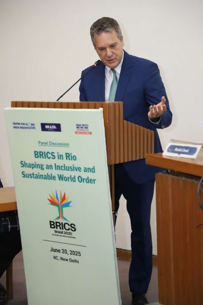 (Brazil’s Ambassador to India Kenneth Félix Haczynski da Nóbrega, delivered a keynote address on core priorities of Brazil’s BRICS presidency at a conference organised by Centre for Global India Insightsand the Embassy of Brazil in New Delhi on June 20, 2025.)