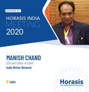 Manish Chand, Founder-CEO and Editor-in-Chief, India Writes Network and India and the World magazine, will speak at the conference and moderate a session on “Targeting the Politics during Pandemic.” The session on politics (scheduled for 3.30 pm IST) deserves attention from politicians and policy makers as it will deal with the all-important issues of the role of political opposition during an unprecedented national and international crisis like the coronavirus pandemic,” he said ahead of the Horasis India Meeting. “In such a huge humanitarian crisis, India and the world needs a new vision of creative and constructive politics that goes beyond self-serving agenda of politicians,” he said.