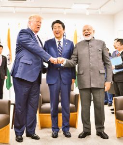 “Committed to a better future. Meeting of JAI (Japan-America-India)Trilateral takes place in Osaka. PM @AbeShinzo welcomes the leaders. @POTUS congratulates Prime Ministers Modi and Abe for their electoral victories. PM Modi highlights the importance India attaches to JAI,” the prime minister’s office tweeted.