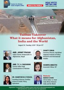 The sudden capture of Kabul by the Taliban on August 15 and the ensuing chaos has triggered anxiety about the future of Afghanistan and its implications for India, the region and the world. Against this backdrop, India Writes Network and India & The World magazine are organising a webinar with eminent diplomats and experts this week on August 24 (Tuesday).