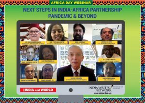 The webinar entitled “Mapping Next Steps in India-Africa Partnership: Pandemic & Beyond,” brought together eminent diplomats, experts and thought leaders from India and Africa. The conference focused on enhancing India-Africa cooperation in the immediate context of the pandemic and also in the post-COVID economic recovery. Moderated by Manish Chand, Founder-CEO of India Writes Network and India and the World, a magazine focused on international affairs, the webinar was addressed by eminent diplomats and experts.
