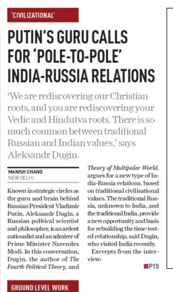 A) Under PM Modi’s leadership, India has become a major force in global affairs. India is returning to its eternal traditional principles. This is an India unknown to Russia — India proud of its Vedic roots, karma, and completely different concepts from western political and social theories. Meanwhile, Russia is returning to its Christian Orthodox values: the church, Christ, the Orthodox worldview, and the sacredness of the empire.
